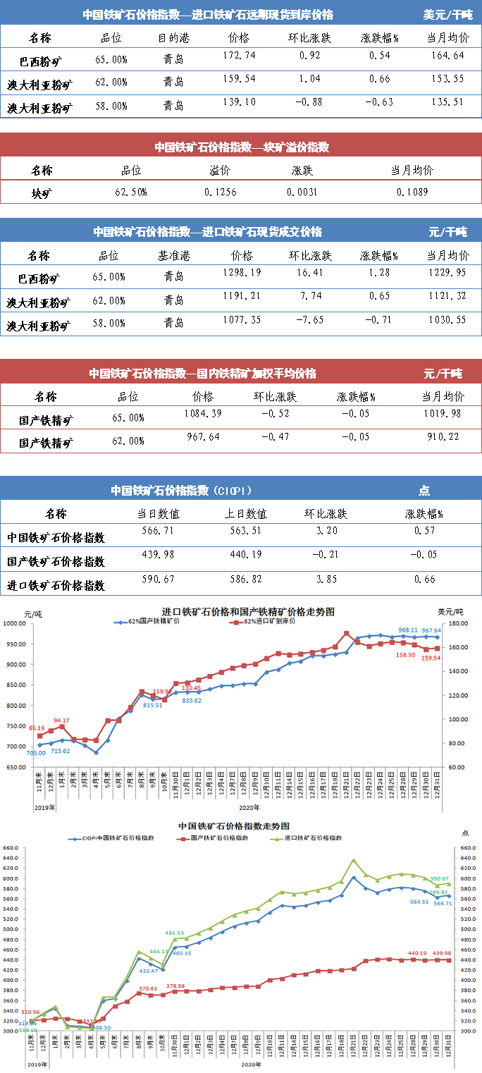 【行业指数】12月31日中国铁矿石价格指数