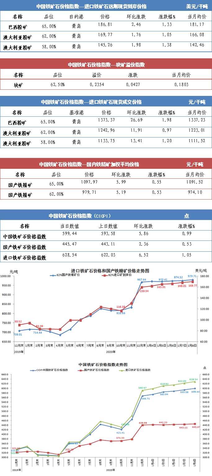 【行业指数】1月8日中国铁矿石价格指数