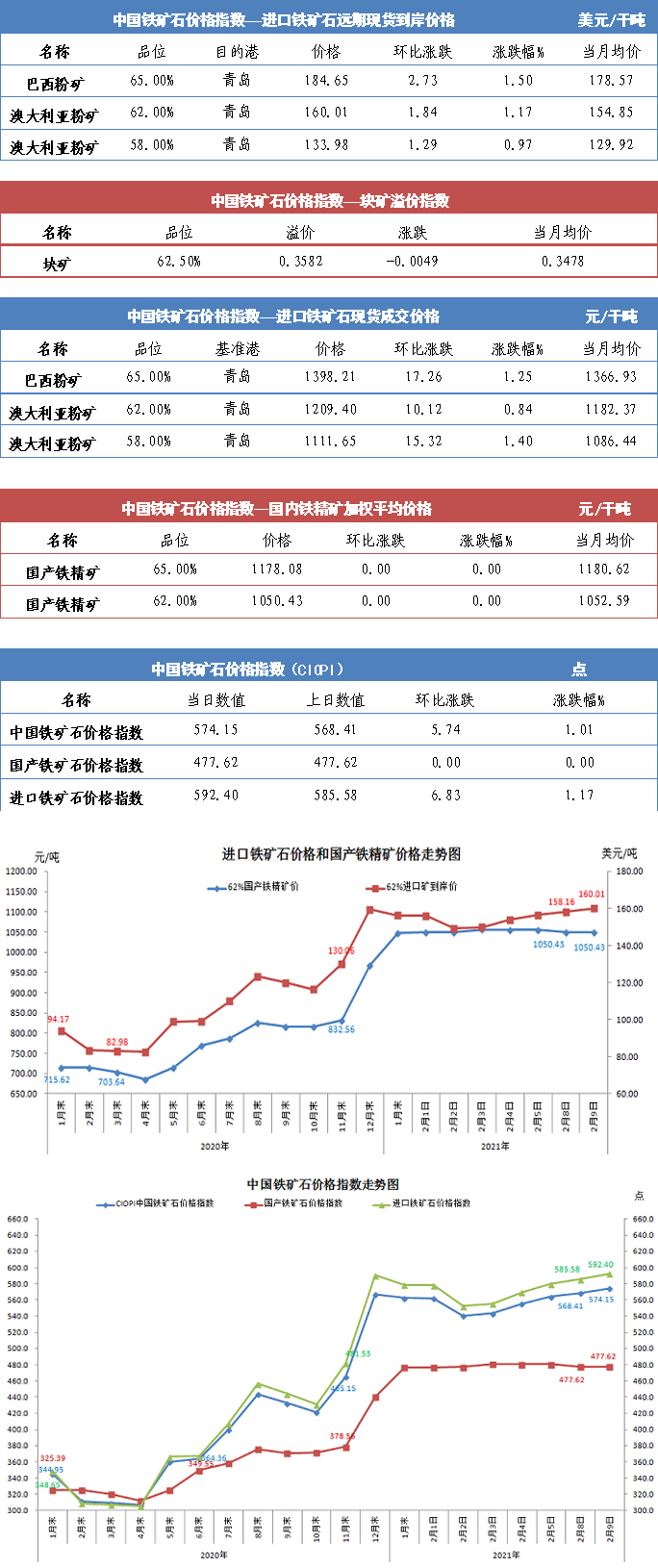 【行业指数】2月9日中国铁矿石价格指数