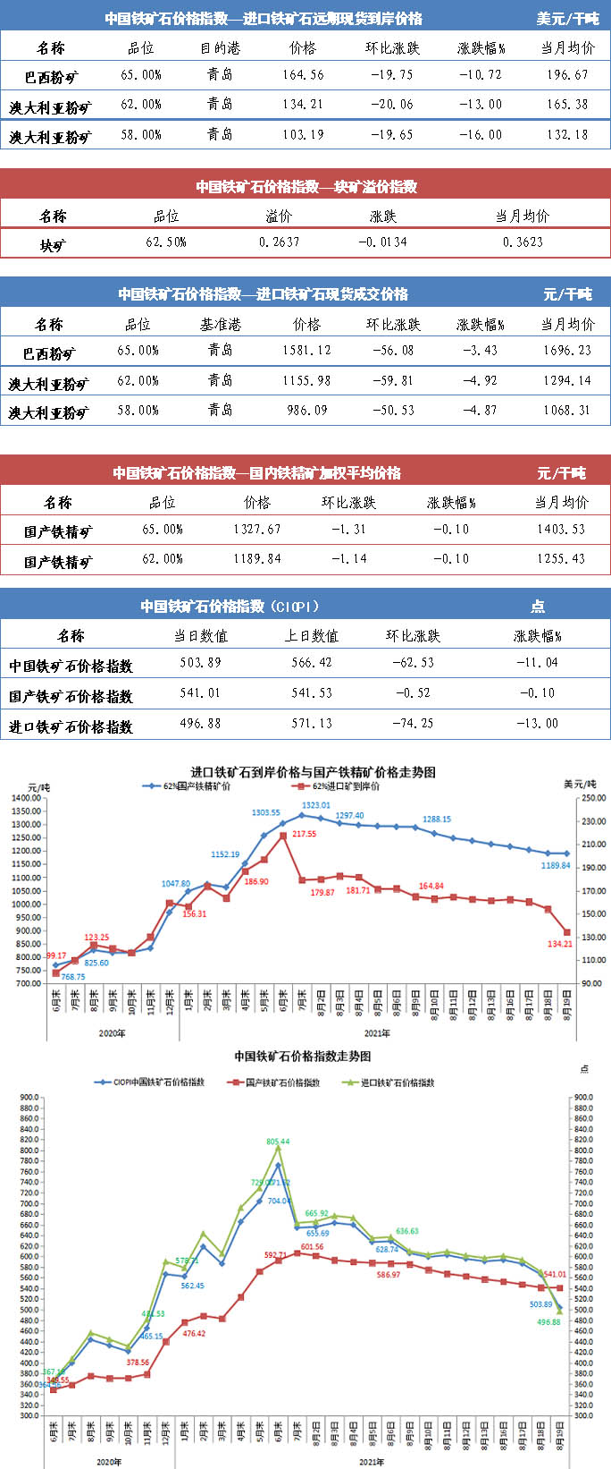 【行业指数】8月19日中国铁矿石价格指数