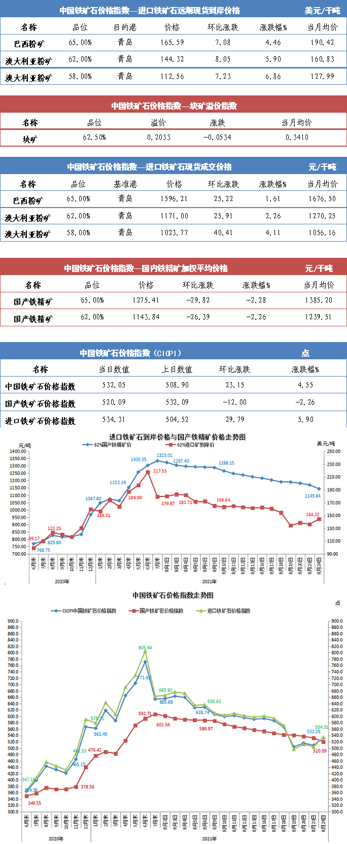 【行业指数】8月24日中国铁矿石价格指数