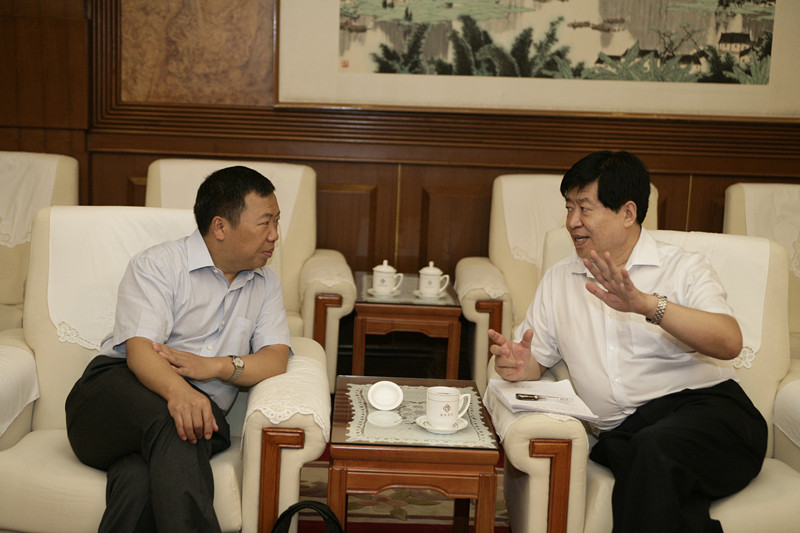 工信部原材料司副司长苗治民与河北钢铁(集团)公司董事长、党委书记王义芳进行交流