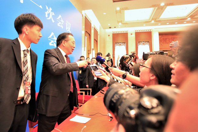 发布会结束后,记者们第一时间冲向新闻发言人进行追问。