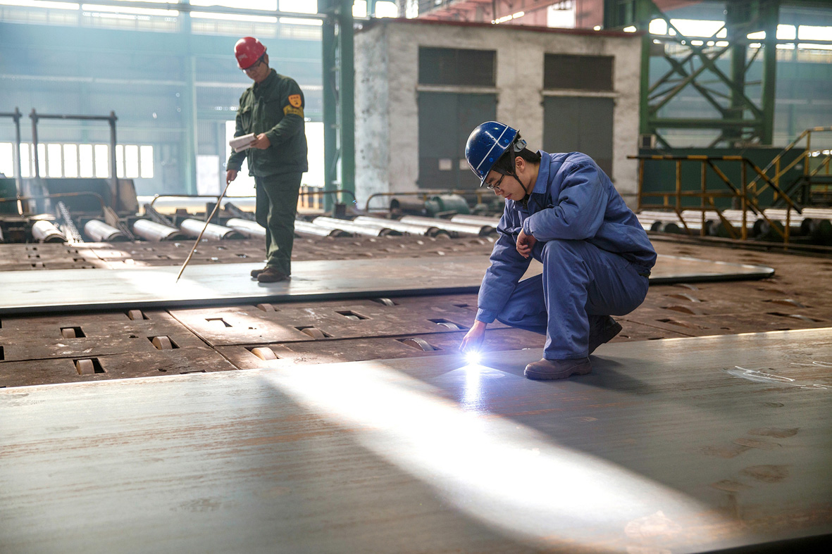 河钢邯钢中板厂扎实推进以产线为独立市场单元的组织结构扁平化变革,大力应用新工艺、新技术,提高品种钢生产水平。目前,品种钢比例达到95%,产品结构进一步优化。图为该厂职工正在检查中板产品表面质量。(记者 吴兆军 通讯员 刘兵 王其 摄)