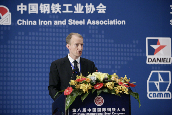 西门子奥钢联冶金技术有限责任公司首席执行官奥布莱特·诺伊曼发言(曹海艇 摄)
