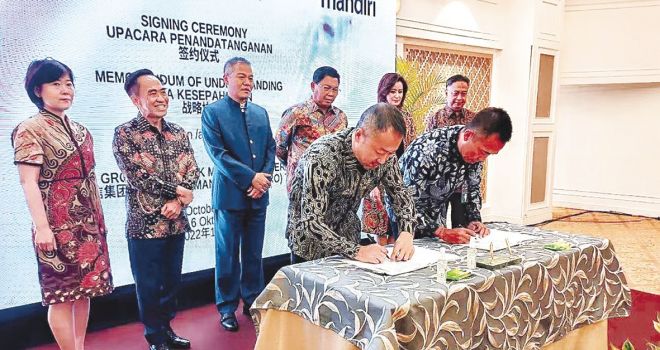 图为2022年10月6日,德信集团与印尼曼迪利银行签署长期战略合作协议现场。 (德龙 供图)