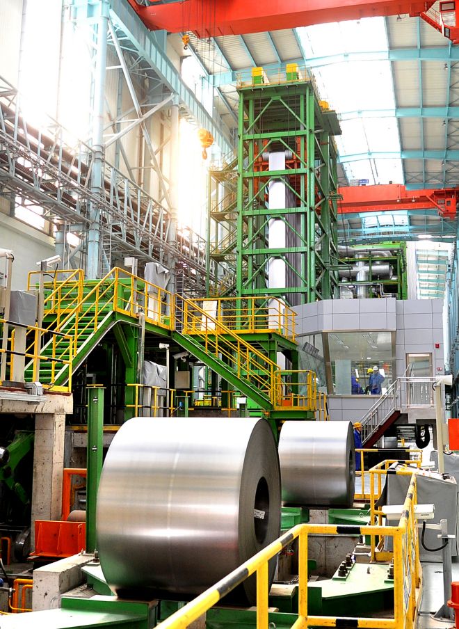 在距离本溪市区8公里的桥北钢铁深加工产业园区,清澈的细河旁,本钢冷轧总厂三冷分厂湛蓝色的厂房格外醒目。