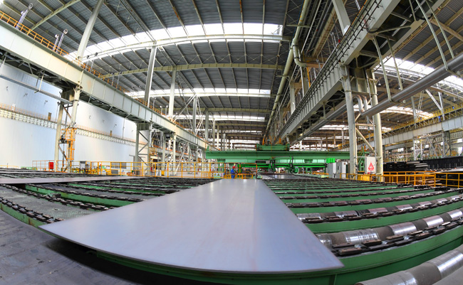 4月15日,中国宝武太钢集团超级双相不锈钢板生产有序进行(如图)。今年初以来,太钢持续加大双相不锈钢研发力度,先后突破了经济型双相不锈钢冷板表面粗糙度窄范围控制和超厚规格钢板组织均匀性控制难题,实现了厚度为115毫米的超级双相不锈钢板材量产,进一步助力石化、造纸、海洋平台等工程的材料国产化进程。 (特约通讯员 王旭宏 摄)
