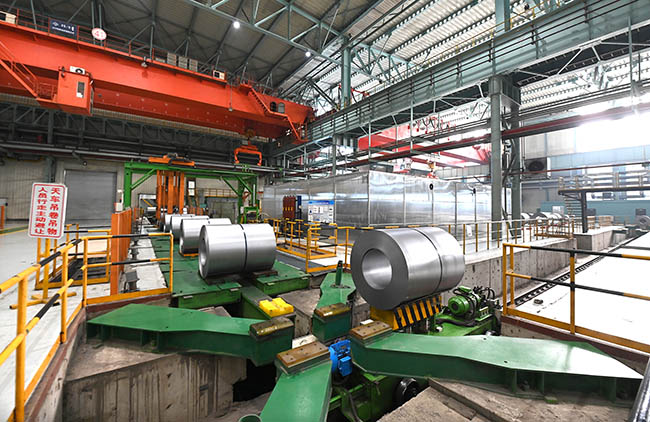 1月23日,习近平总书记到鞍钢集团本钢板材冷轧总厂第三冷轧厂 考察。该总厂干部职工牢记总书记 的嘱托,加快将其转化为强大动力 和实际行动。元月份,该总厂围绕 “夺优质、创高产、争效益”目标,聚 焦生产任务指标,全面优化生产方 案,强化过程管控,多项指标实现新 突破。其中,3号酸轧机组高强钢月 产量突破8万吨,超设计产能16%, 590 兆帕级别以上超高强钢完成设 计产能300%;2号、3号连退机组时 隔10个月同时达到月产目标;三冷 区域原品种一次合格率超目标 0.41%。图为刚下线的本钢汽车钢 产品。 (特约通讯员田峥摄)
