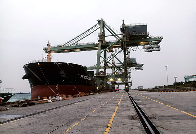 1月26日,宝钢股份湛江钢铁成品码头传来捷报:外轮“魔术师”号成功靠泊成品码头(如图)。据悉,这艘总长221.7米、载重64999吨的货轮一举刷新了该成品码头建港以来靠泊尺寸最长、吨位最大船舶纪录。此次外轮装船作业中,湛江钢铁物流部、中冶宝钢、宝交物流团队精心组织、周密安排,仅用34小时便完成了1.965万吨热卷装载任务,刷新了码头作业效率历史纪录。(冼华荣摄)