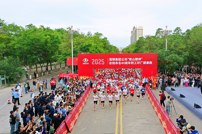 6月7日,酒钢集团“铁山精神”总结命名40周年职工环厂健康跑比赛开赛(如 图)。1985年,酒钢公司党委在镜铁山矿召开千人动员大会,正式总结命名“艰苦创业、坚韧不拔、勇于献身、开拓前进”的“铁山精神”。1997年,原冶金部将这一精神确立为全国冶金系统六大精神之一,使之成为了酒钢人永不褪色的初始信仰。此次活动充分展现了酒钢人积极向上、奋发有为的精神风貌。(张瑾/文 张志方/摄)