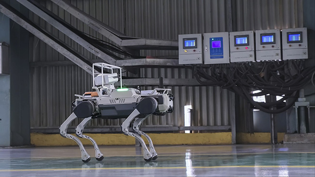 7月20日,一个名为“宁小铁”的四足机器人正迈着稳健的步伐在杭钢集团宁波钢铁高炉区域穿梭,它是这里最新上岗的“巡检哨兵”(如图)。该机器人是宁波钢铁联合杭州“六小龙”之一的杭州云深处科技有限公司打造的首个以高炉风口平台为核心应用场景的智能巡检四足机器人。该机器人通过激光反射定位技术,可实现7×24小时的不间断值守,彻底消除人工巡检可能出现的疲劳盲区。此外,“宁小铁”借助其搭载的32位双核 5G模块和厂区室内外全覆盖的5G专网,能将感知数据实现毫秒级回传,通过深度学习算法对这些数据进行分析处理,将传统依赖经验判断的巡检,升级为可量化、可追溯的数字诊断,成功构建了“感知—传输—分析—决策”的全链路技术体系。(陈晓明 摄)