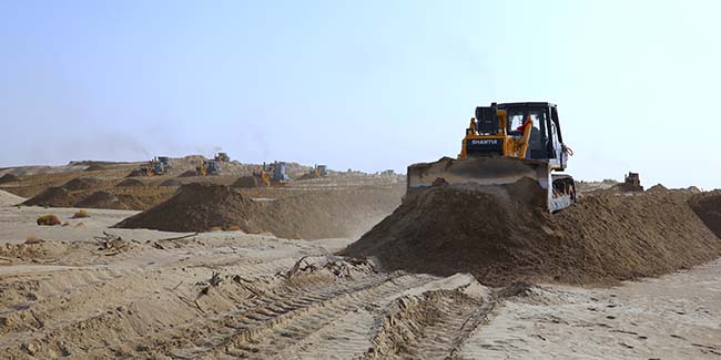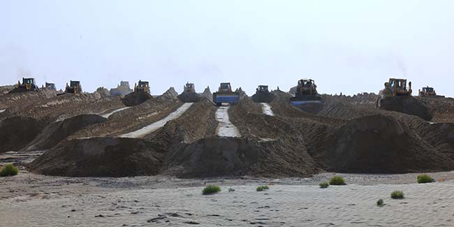 10月24日,第一师阿拉尔市塔里木河干流生态综合治理项目施工现场。