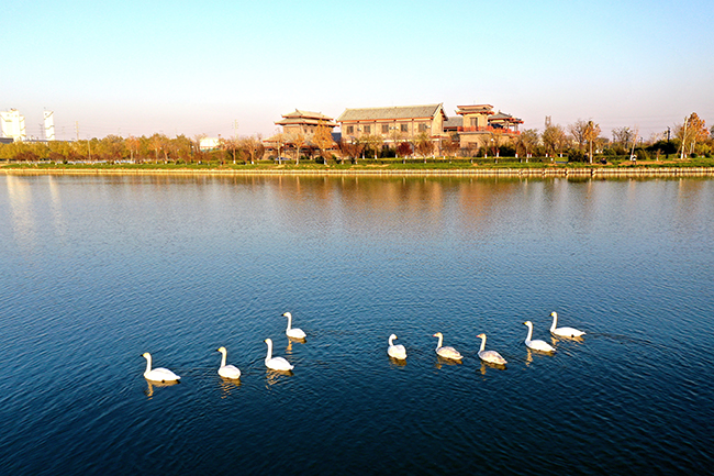 11月21日,一群洁白的天鹅如期飞临晋南钢铁集团太子湖,在碧绿湖面舒展羽翼、嬉戏游弋,为这座绿色钢城增添了灵动生机(如图)。每年此时,天鹅如约而至,成为晋南钢铁集团绿色发展成效最直观的“生态答卷”。(邹莹/文 特约通讯员 丁卫国/摄)