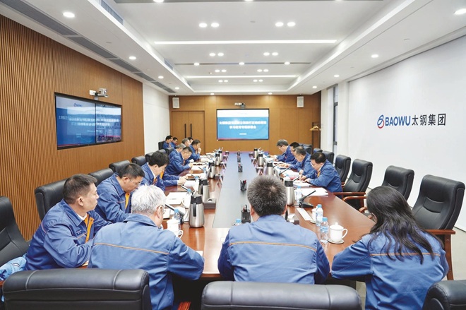 3月4日,中国宝武太钢集团党委常委会(扩大)暨党建工作领导小组会议召开,认真学习贯彻习近平总书记关于树立和践行正确政绩观学习教育的重要讲话和重要指示精神,传达学习中共中央、国务院国资委党委和中国宝武党委关于开展树立和践行正确政绩观学习教育的要求,全面部署启动太钢集团树立和践行正确政绩观学习教育。图为会场。(樊建华 摄)