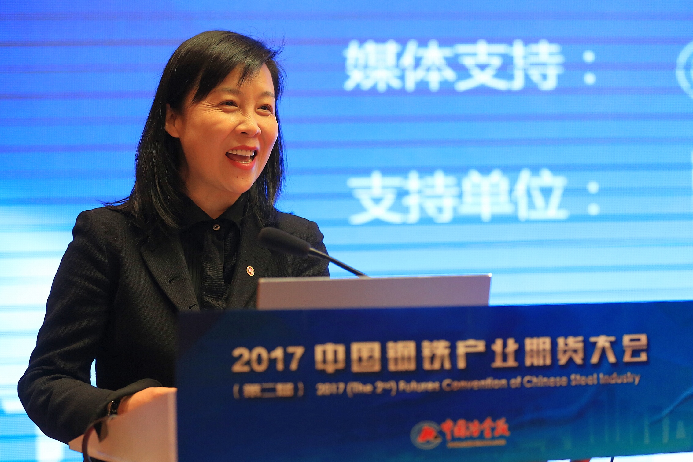 12月1日,2017(第二届)中国钢铁产业期货大会在北京召开,图为大连商品交易所副总经理朱丽红致辞 中国冶金报 中国钢铁新闻网 记者 顾学超 实习记者姚宇摄影