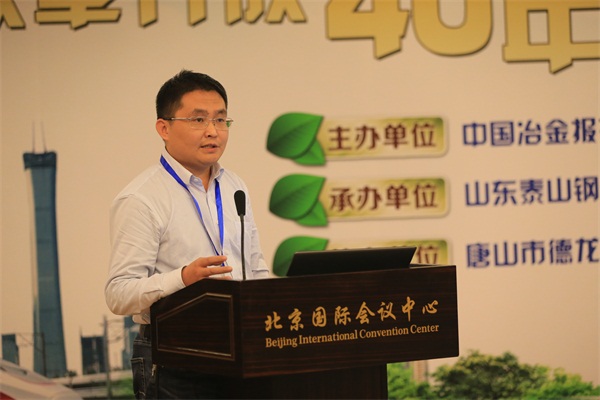 11月30日,由中国冶金报社和中华环保联合会共同主办,山东泰山钢铁集团有限公司、《冶金经济内参》、《中华环境》承办,唐山市德龙钢铁有限公司协办的改革开放40年钢铁行业绿色发展论坛在北京召开。图为中冶节能环保有限责任公司脱硫脱硝技术部部长、高级工程师李鹏飞在做大会交流(记者 顾学超 摄影)