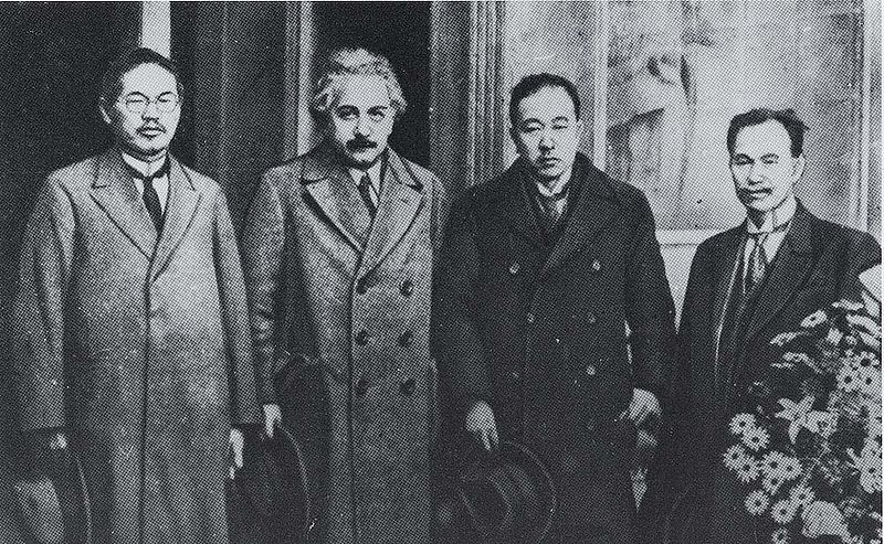 爱因斯坦访问日本东北大学时与本多光太郎合影。左三为本多,左二为爱因斯坦。