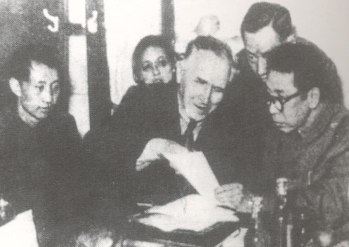 1955年6月叶渚沛所长(右一)与前苏联科学院巴尔金院士(右二)进行学术交流