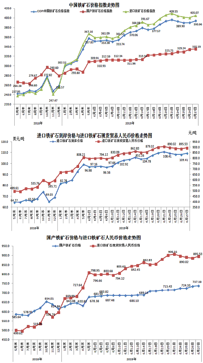 6月27日,国产铁矿石62%品位干基铁精矿含税价格为737.19元/吨,环比每吨上升2.43元,升幅为0.33%;比进口铁矿石低158.34元/吨,降幅为17.68%;当月平均价格为703.45元/吨,比进口铁矿石低148.66元/吨,降幅为17.45%。