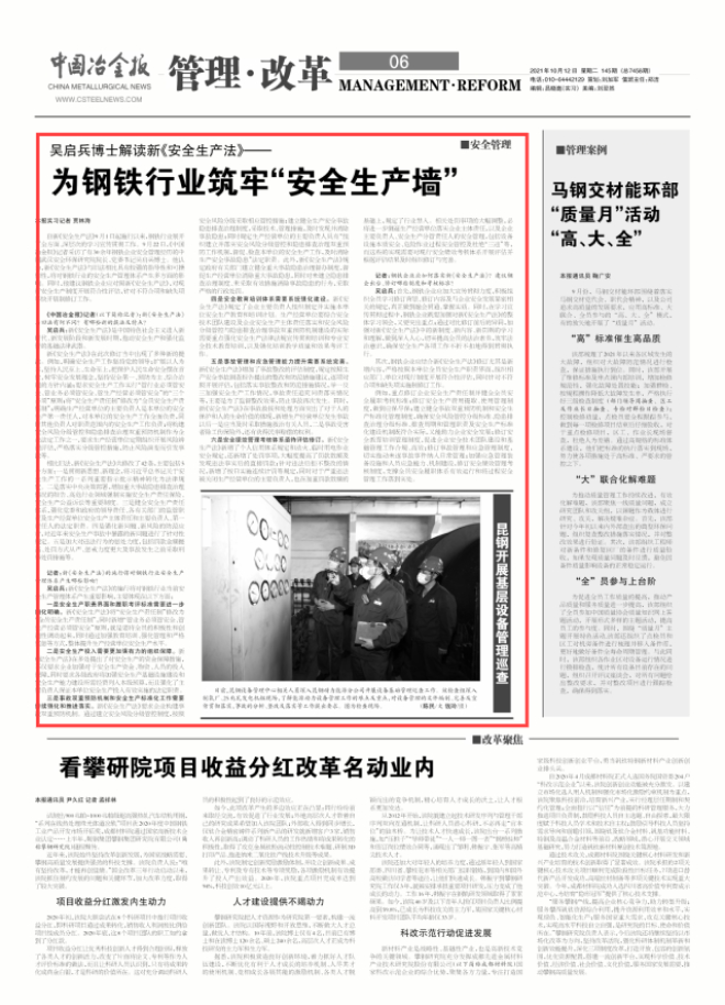 记者:钢铁企业应如何落实新《安全生产法》?建议钢企出台、修订哪些制度和考核标准?