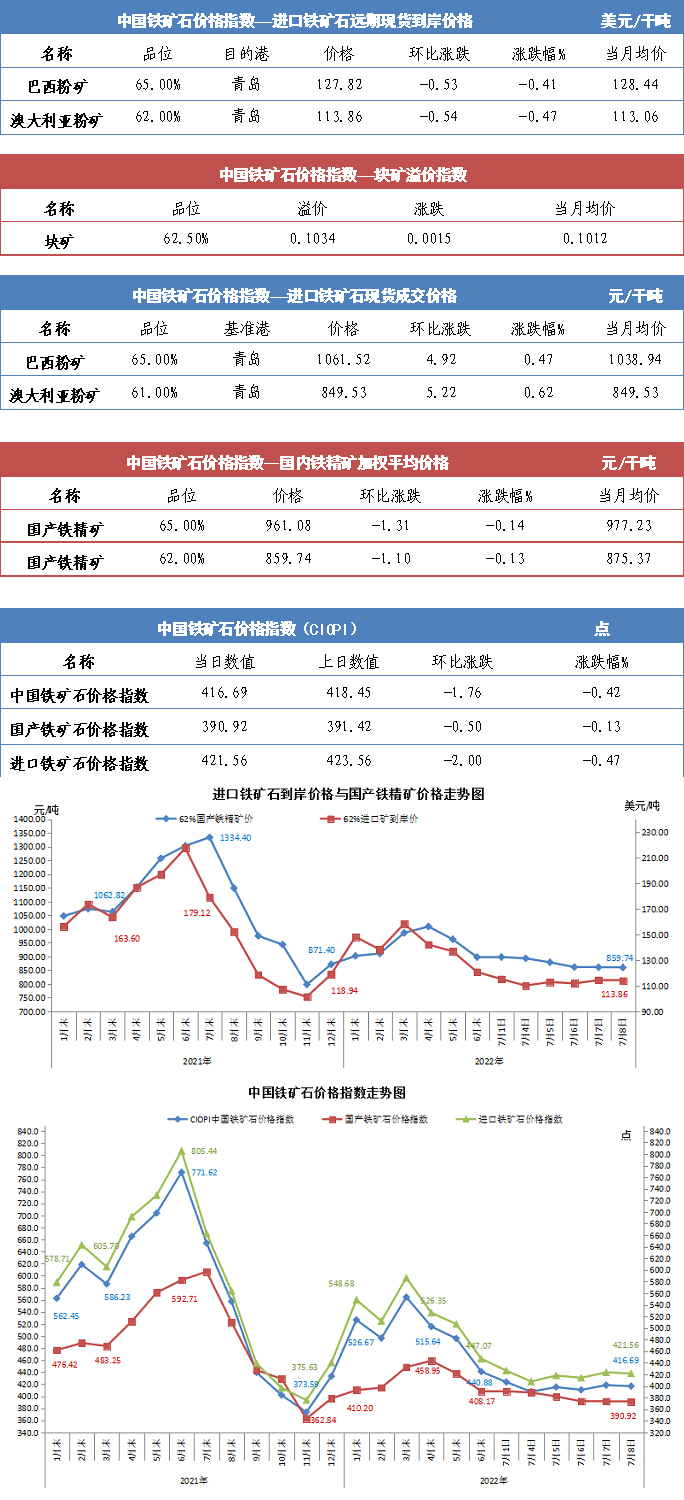 【行业指数】7月8日中国铁矿石价格指数