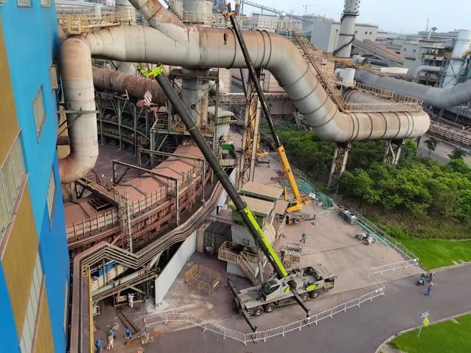 中冶宝钢承接的宝钢股份宝山基地烧结定修项目施工现场