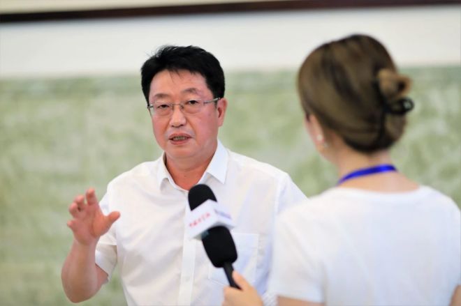 图为黄一新正在接受《中国冶金报》记者采访