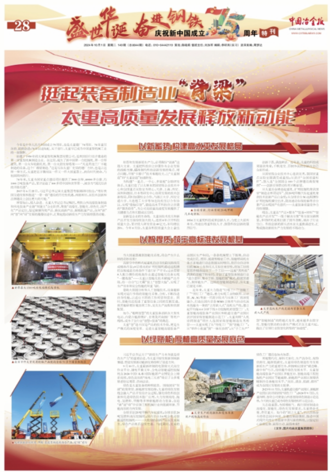 习近平总书记关于“新质生产力本身就是绿色生产力”的重要论述,为太重开辟发展新领域新赛道、塑造发展新动能新优势指明了前进方向。