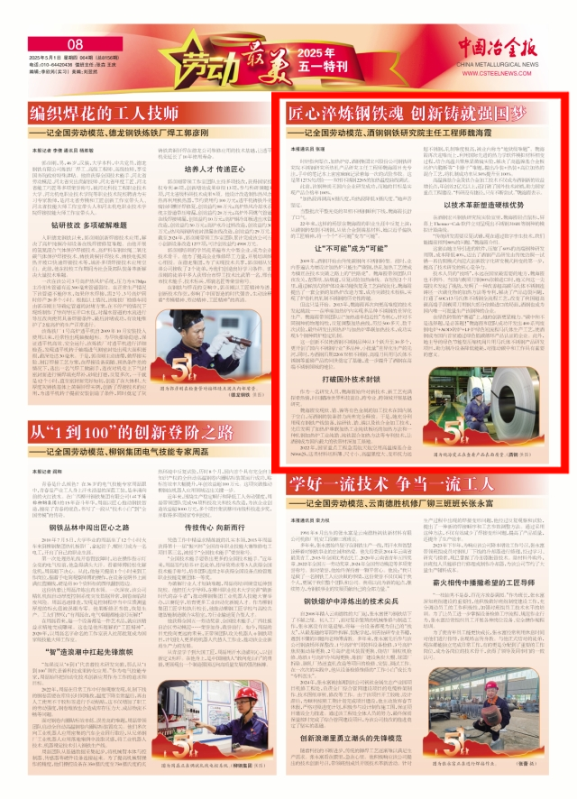 在绿色转型的“赛道”上,她的创新更显魄力。“碳中和不是选择题,是必答题!”魏海霞和团队成功开发出400系列废钢电炉+AOD转炉+LF炉绿色短流程马氏体生产工艺,使酒钢成为国内首家通过绿色低碳循环产品认证的企业。此外,她主导的绿色节能型压缩机阀片用马氏体不锈钢产品研发项目,助力制冷设备降低能耗,对推动碳中和工作具有重要的意义。(张瑾)
