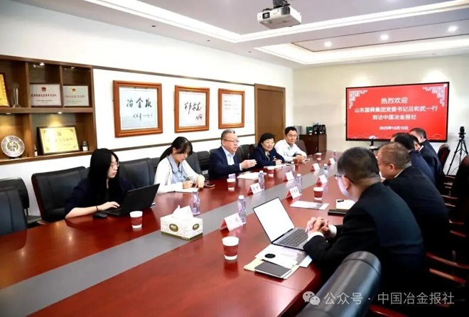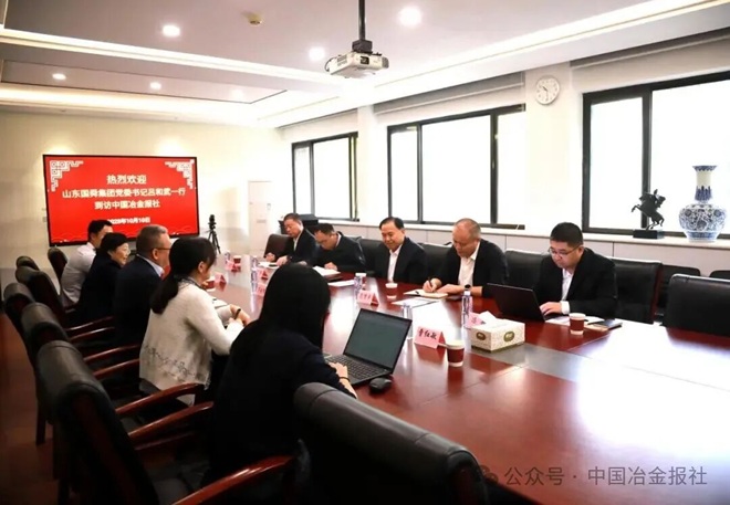 10月10日,山东国舜建设集团有限公司(以下简称“国舜集团”)党委书记吕和武一行到访中国冶金报社,与报社副社长范铁军进行座谈。双方围绕进一步推动钢铁行业绿色低碳高质量发展深入交换意见,并就未来合作方向达成广泛共识。