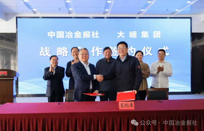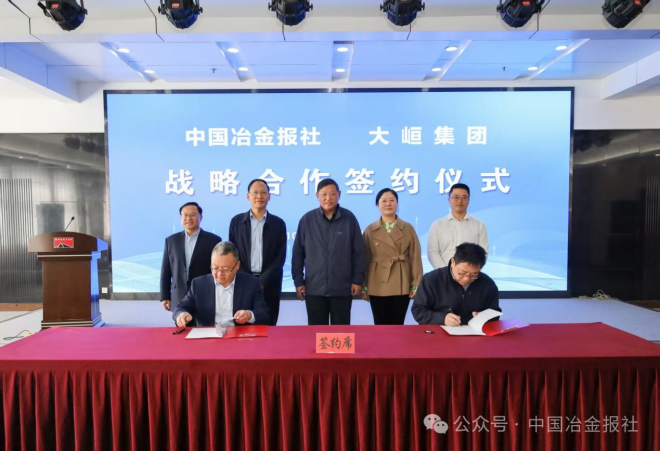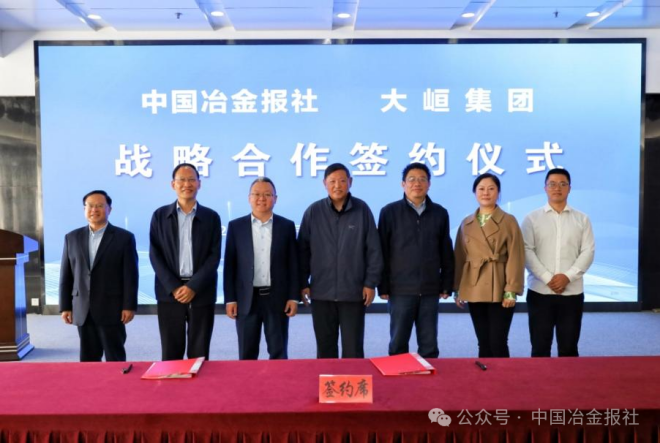 10月27日,中国冶金报社副社长范铁军一行到访大峘集团有限公司,与大峘集团名誉董事长卢显忠、党委书兼董事长记杜刚座谈交流,并签署合作协议。双方将聚焦技术创新传播、品牌形象塑造、行业资源对接等方面重点深化合作,为大峘集团高质量发展注入动能,助力钢铁行业转型升级。