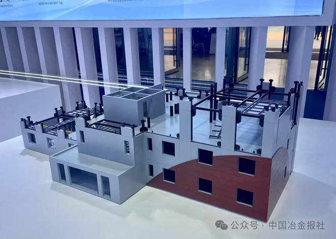 智能建造技术是该届展会上钢结构领域的另一大亮点。钢结构建筑最明显的特征便是可在工厂预生产、现场快安装,不受作业现场环境限制,且施工现场相对清洁,对周边环境影响小。在展会现场,《中国冶金报》记者看到,基于模块化建造,叠加智能化要素的钢结构建筑实现了从设计到施工的全流程数字化管理。