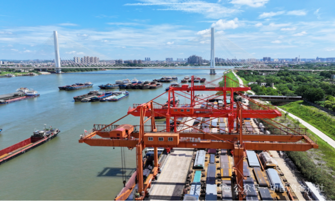 (湘钢顺祥码头正在进行吊运作业 摄影:贺意波)