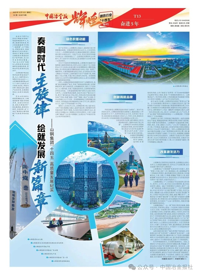 时代呼唤钢铁担当,历史期待重铸荣光。当前,山钢依托与中国宝武的合资协同与赋能支撑,积极融入中国宝武沿江沿海“弯弓搭箭”战略布局。面向未来,山钢集团将以高质量发展为首要任务,聚焦“打造具有持续极强竞争力的钢铁集团”奋斗目标,遵循“透明、规范、高效”的治理原则,通过生产经营与资本运营“双轮驱动”,全面建设党建质量高、产业结构优、创新活力足、治理效能佳、民生福祉好、股东目标明、综合实力强的新山钢。(褚慧娟 孙亚宁)