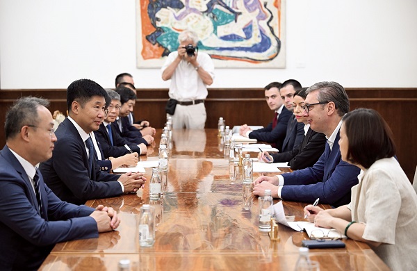 当地时间2025年7月24日,塞尔维亚总统武契奇在贝尔格莱德会见河钢集团董事长刘键。武契奇说,作为塞尔维亚最大外国投资者之一,河钢是守护塞尔维亚工业支柱的关键伙伴。对塞尔维亚而言,维系河钢塞钢5000个就业岗位、确保生产稳定,不仅是国家核心利益,更是中塞双边关系的战略基石。刘键表示,在习近平主席和武契奇总统的关心下,在河北省委省政府的坚强领导下,河钢集团全力支持河钢塞钢经营发展,河钢塞钢管理团队和全体员工团结协作、勤勉敬业,保持了钢厂良好运营。 (河钢 供图)