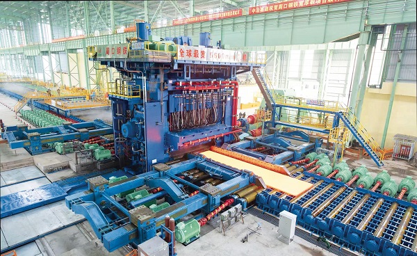 2024年10月31日,全球最宽轧机——河南钢铁集团周口基地5600毫米轧机成功轧制出第一块宽厚板(如图)。据悉,此次成功热试的5600毫米轧机,是首次采用“国内设计+国内制造”的超大规格宽厚板轧机,打破了国外技术垄断,实现了我国钢铁行业装备制造的新突破。 (特约通讯员 殷海民 摄)