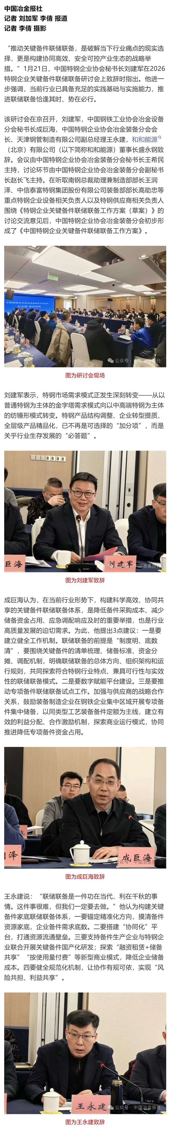 破解当下行业痛点的现实选择——特钢协推动特钢企业关键备件联储联备