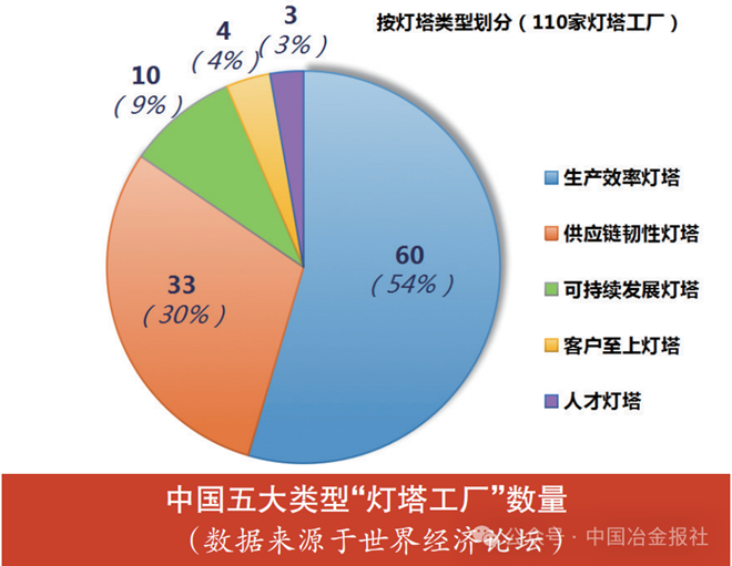 中国“灯塔工厂”数量,按行业划分共99家;按五大类型划分,因部分企业同时拥有多个不同类型“灯塔工厂”称号,总数达110家。