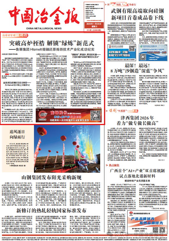“未来,鲁丽将以HIsmelt工艺为基础,进一步扩大应用规模,研发年产200万吨以上的熔融还原炼铁系统。”郭栋表示,鲁丽还将持续开展技术攻关,优化工艺参数与完善设备设计,积极探索全氧冶炼、氢基还原、生物质喷吹等绿色技术与HIsmelt工艺的融合路径,进一步降低碳排放强度。同时,鲁丽还将联合上下游企业建立涵盖原料供应、设备制造、技术服务等环节的熔融还原技术产业联盟,推动形成完整的低碳冶炼产业链,提升行业整体竞争力。