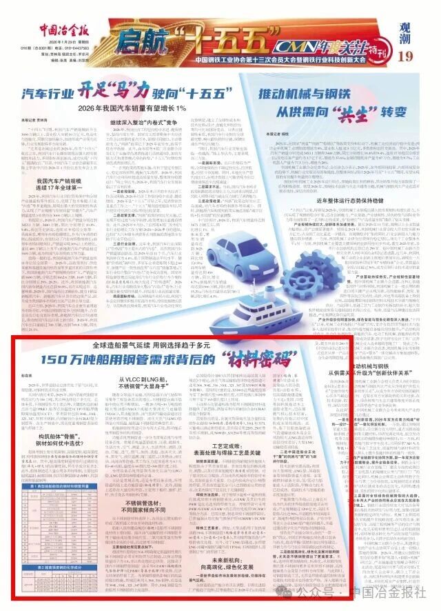 三是船舶高端化、绿色化发展对船用钢管,尤其是不锈钢管提出了更高要求。未来,选材将更加精细化、标准化,从依赖传统奥氏体不锈钢向更多采用双相不锈钢、高性能镍基合金及复合材料方向发展。与此同时,对钢管制造工艺,尤其是焊接质量控制和表面处理技术的要求也将愈发严格。深入理解并适应这些趋势,是国内钢管制造企业把握船舶市场发展机遇的关键。