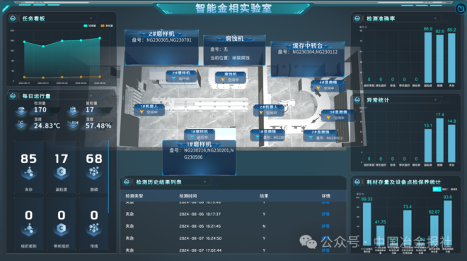 这种转变在春节期间体现得尤为明显。在传统模式下,由于生产不停歇,金相检测工作也要连续进行,春节期间需要安排人员轮流值班,确保检测结果及时出炉。这意味着许多检验人员不能与家人团聚。而今年除夕,南钢金相实验室的情况完全不同,除了24小时在线的智能检测系统,工人岗位上只剩下空椅子。工人只需将试样装夹到料架上,就可以回家过年了。机器人会自动完成所有检测工作,检测报告实时生成并上传到系统。项目团队通过线上方式进行监控和保障,即使遇到突发情况,也可以远程处理,无需人员现场值守。