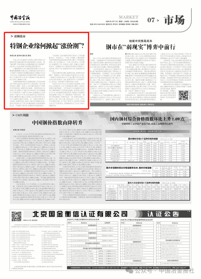 日前,受中东地缘冲突影响,国际市场钨、钼原料供需失衡加剧,推动我国特钢行业迎来一轮“涨价潮”,多家特钢企业相继调涨含钨、钼特钢产品价格,行业成本端与市场端出现显著变化。