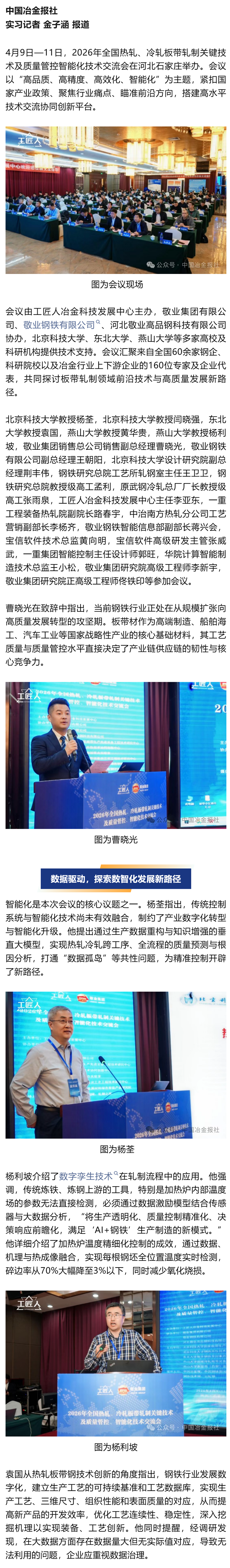 2026年全国热轧、冷轧板带轧制关键技术及质量管控智能化技术交流会举办——聚焦高品质、高精度、高效化、智能化,共促板带制造转型升级