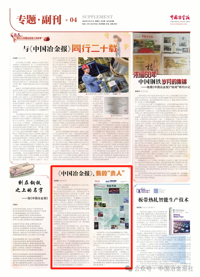回过头看,《中国冶金报》是我成长中的重要平台,从知道姓名的《冶金报》湘钢记者站主任记者郭圭琮,到不知姓名的编辑老师,都是我职业生涯中的“贵人”。