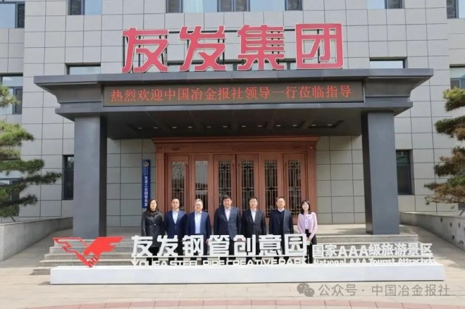 4月21日,中国冶金报社党委书记陈洪飞、副社长范铁军一行率队赴天津友发钢管集团股份有限公司(以下简称“天津友发集团”)参观学习,与天津友发集团董事长李茂津、党委书记金东虎等围绕“深化报企合作,携手互利共赢”的主题展开了深入交流。