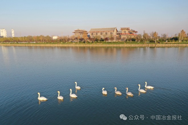 深春时节,野生天鹅停留在晋南钢铁太子湖畔,在碧绿的湖面上嬉戏觅食,与湖面上一排排整齐排列的湛蓝色光伏板一起尽情享受阳光,形成一幅动静相宜的美丽画面。这是晋南钢铁投资上亿元打造的“渔光互补”光伏项目的生动写照。