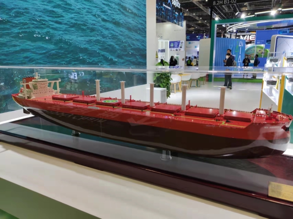此次进博会淡水河谷展台的另一亮点是一艘按照1∶250比例制作的船模,其原型是世界上首艘配备旋翼帆的矿砂船。这艘船名为海洋舟山号,是一艘载重量为32.5万吨的Guaibamax型船。该船共装有5个旋翼帆,使能效至多提高8%,由此每年可减排3400吨二氧化碳当量。淡水河谷预计,旋翼帆技术可用于船队中至少40%的船舶。届时,淡水河谷铁矿石海运过程中产生的二氧化碳排放量每年可减少近1.5%。