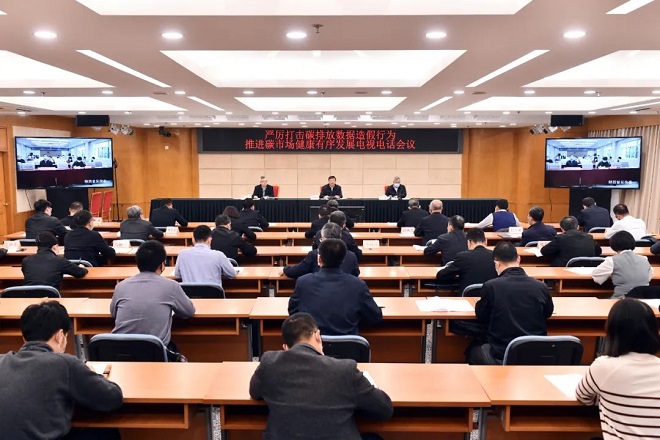 4月8日下午,碳达峰碳中和工作领导小组办公室召开电视电话会议,通报碳市场数据造假有关问题,部署严厉打击碳排放数据造假行为、推进碳市场健康有序发展工作。国家发展改革委副主任胡祖才出席会议并讲话,生态环境部副部长叶民通报有关问题,国家发展改革委副秘书长苏伟主持会议。