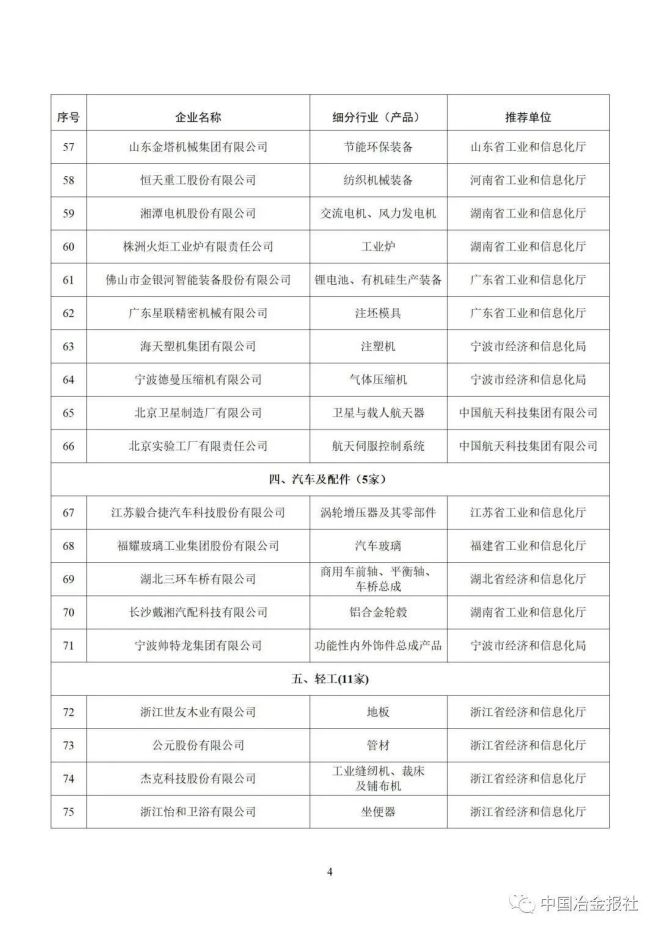 11月27日,工业和信息化部网站发布通知,公布工业产品绿色设计示范企业名单(第五批)。其中,冶金领域有5家企业上榜,名单如下:
